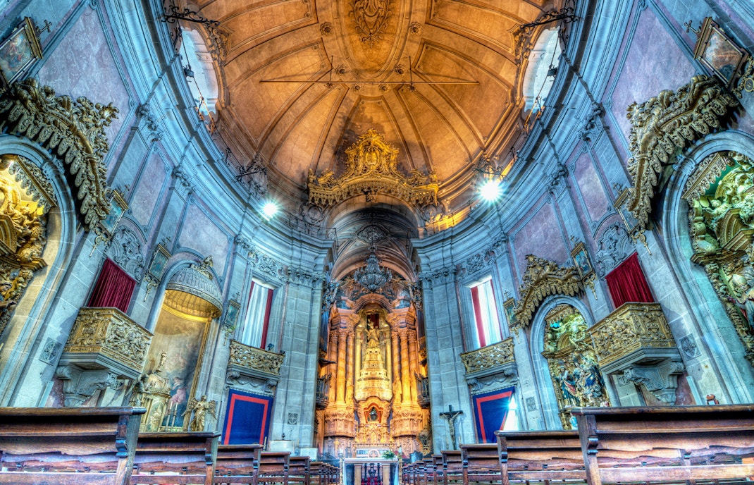 Step into a warm granite interior where gilded woodwork, carved altarpieces, and soft natural light create a calm, contemplative atmosphere. The elliptical nave draws your eye toward the richly decorated main altar, while the tomb of architect Nicolau Nasoni adds a personal historical touch. The gallery that surrounds this nave is also a unique feature, with a view of the church as a whole.